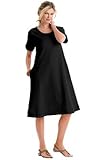 Woman Within Plus Size Roll Cuff T-Shirt Dress (Black,1X) : Womens Plus Size Dresses